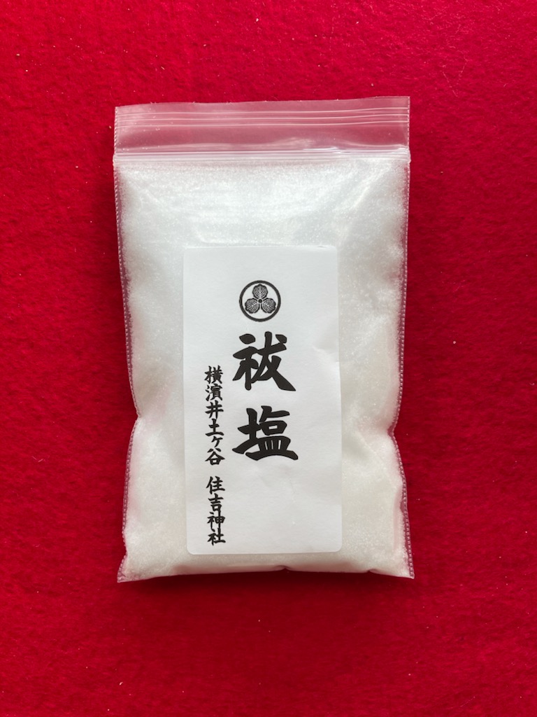 この度『祓塩』を授与品として置かせていただきます。 祓いの神・住吉大神の御神前でご祈祷した『清めの塩』です。 ・神棚、家の玄関、店舗、事務所などに盛り塩 ・料理やお風呂に入れる ・・・などに是非お使いいただけたらと思います。